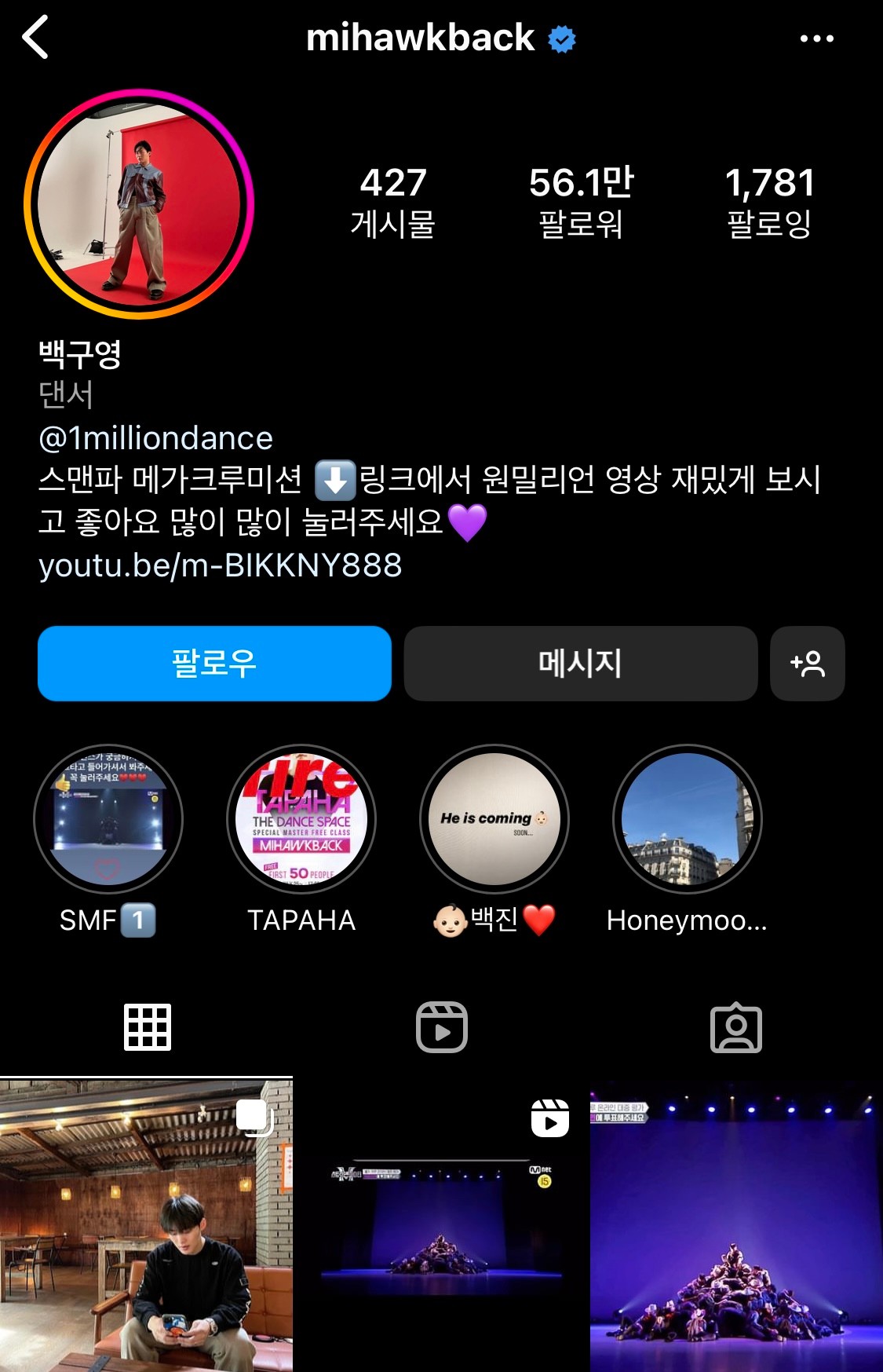 오늘은 원밀리언 소속 백구영 안무가님에 대해 포스팅을 해볼겁니다.