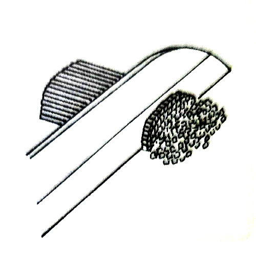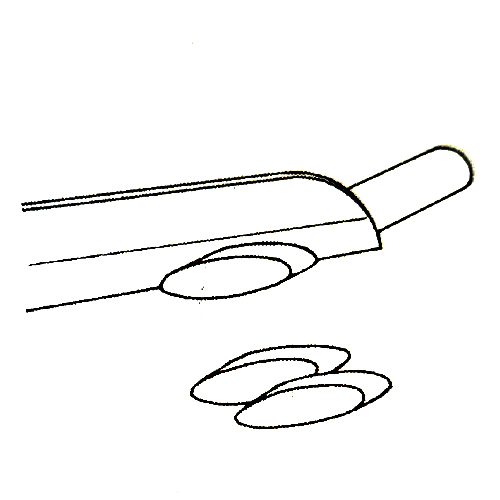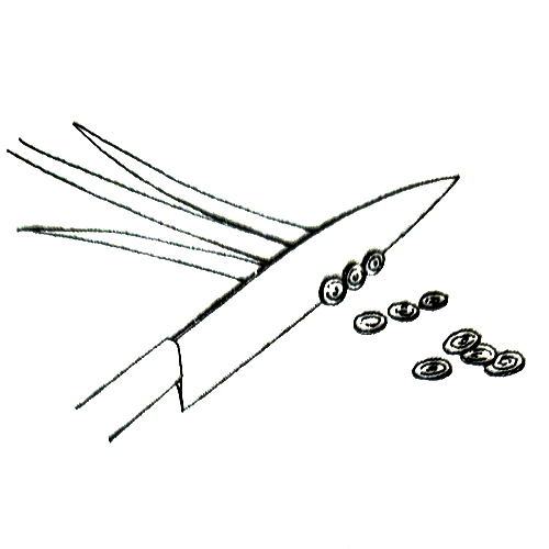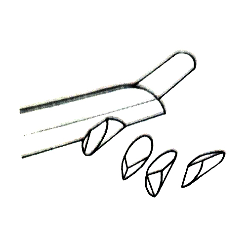 대나무 잎 모양이며, 연필을 깎듯이 재료를 손으로 돌려가며 대나무 잎 모양이 되도록 자릅니다.