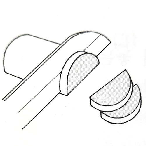 둥글고 긴 모양의 재료를 길이로 이등분하여 와기리처럼 짜릅니다.