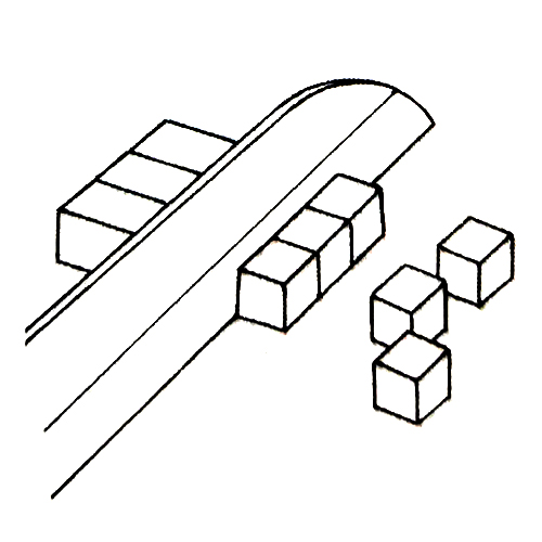 길이 4~5cm 두께 1cm의 크기 정도의 사각막대 모양으로 썬 모양이며, 주로 야채재료에 이용합니다.