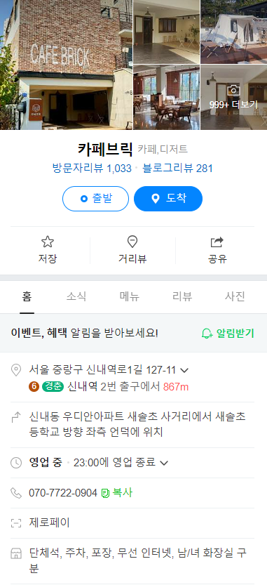 신내동에 위치한 "카페브릭"