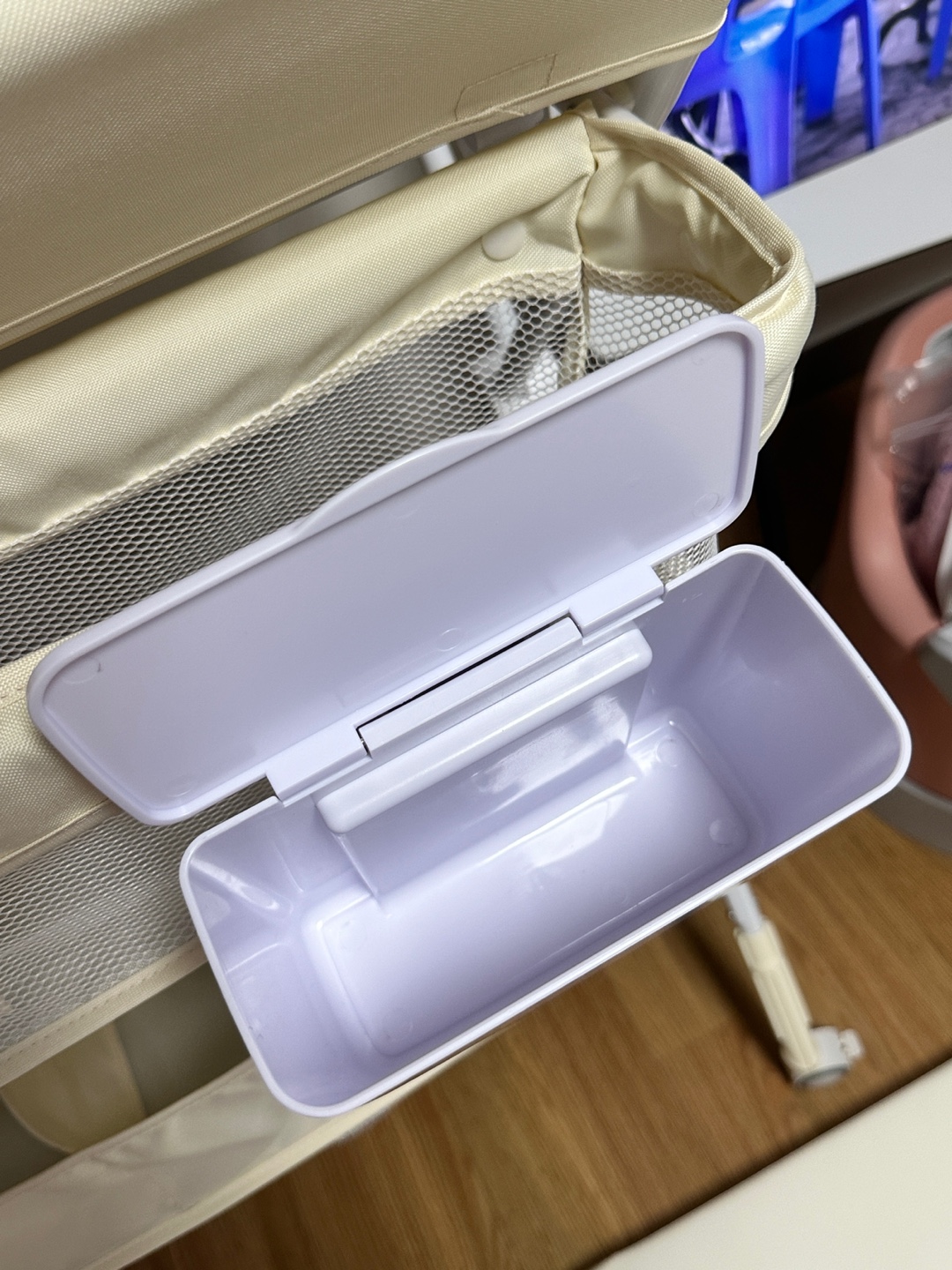 이 곳에도 기저귀나 아기 물티슈를 보관하는 용도로 써도 될 것 같아요!