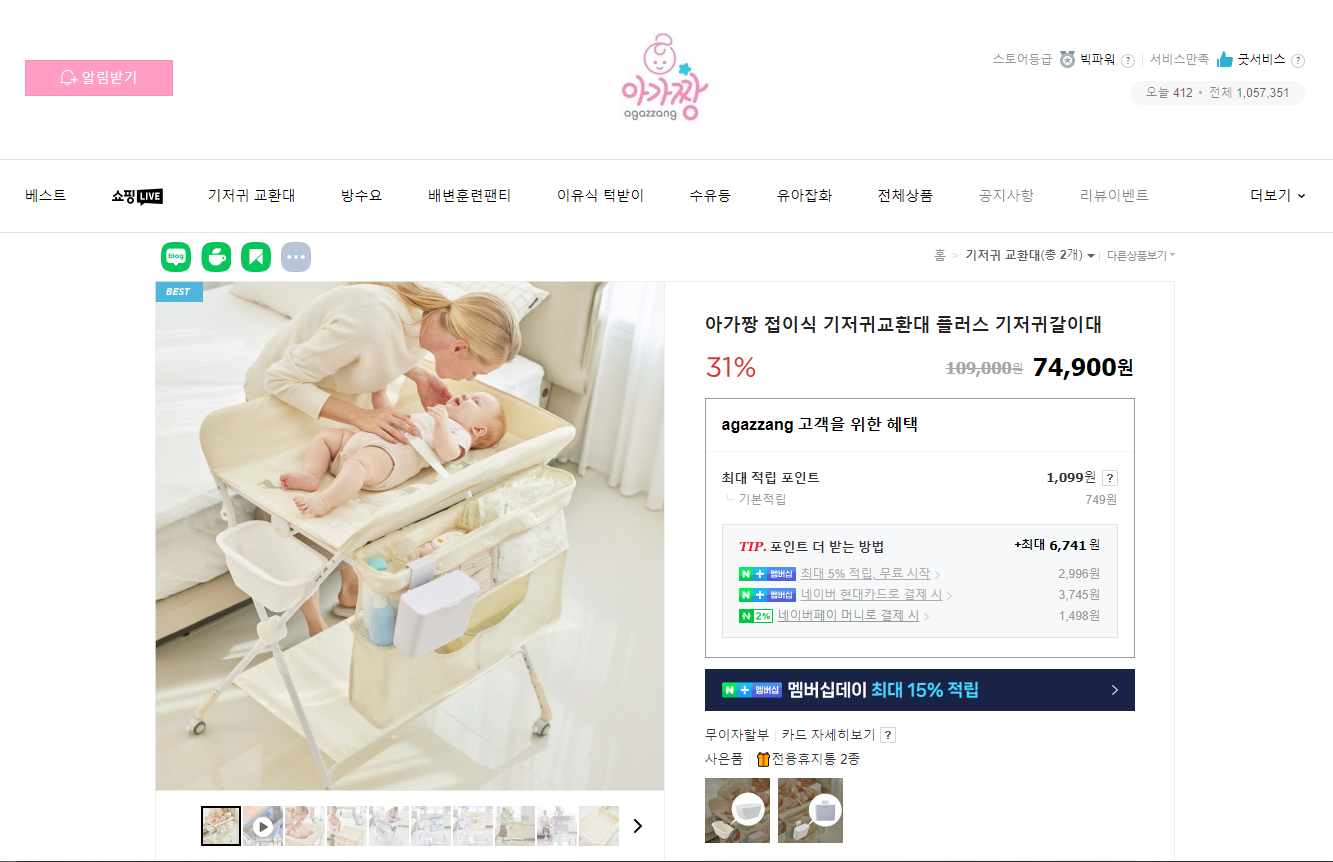 저희는 아가짱 브랜드의 기저귀 갈이대를 선물 받았답니다~