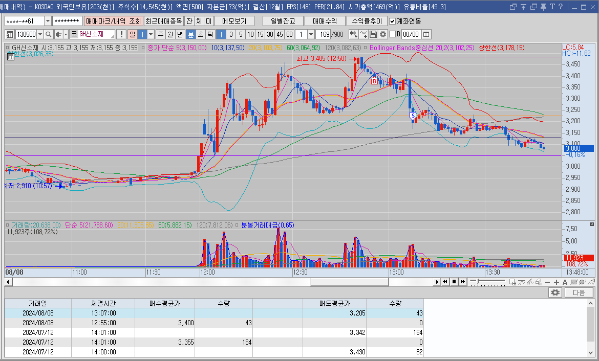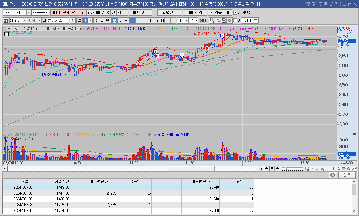 상단까지 올려줘서 횡보할거라 생각하고 매매했는데 내가 실수한건 빠질때 바로 팔지 못했다는거