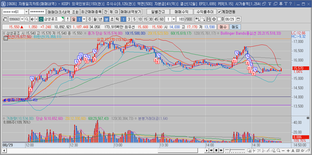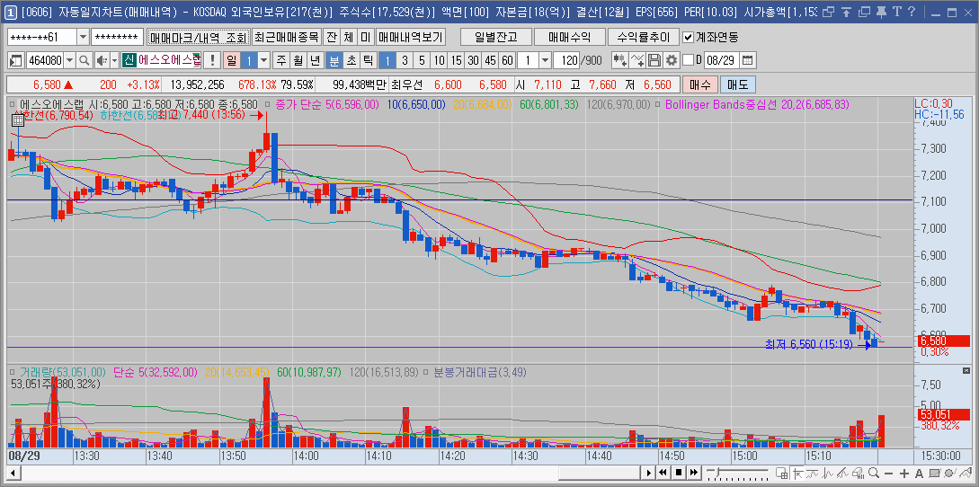 200억정도 기준봉 만들어줫을때 눌림때 들어갔다가 손절하고 나옴...