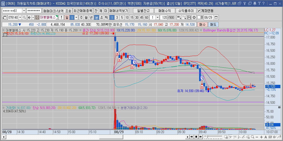 어제 대봉엘에스 가고 보니까 블루엠텍 호재 있어서 드갓다가 나옴...