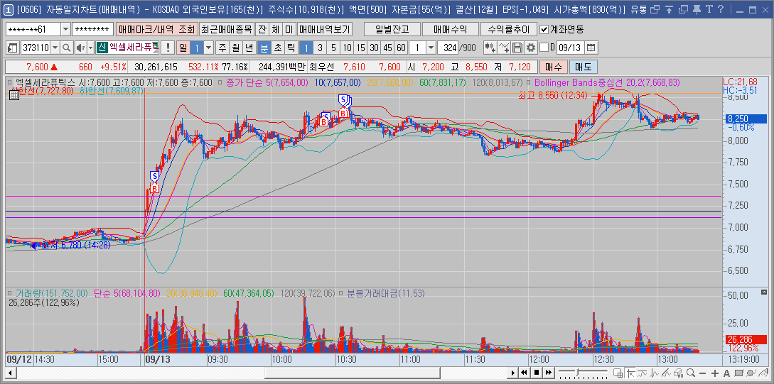 돌파할때 들어갔는데 손절타이밍놓쳐서 반등줄때 더 못가길래 손절하고나옴