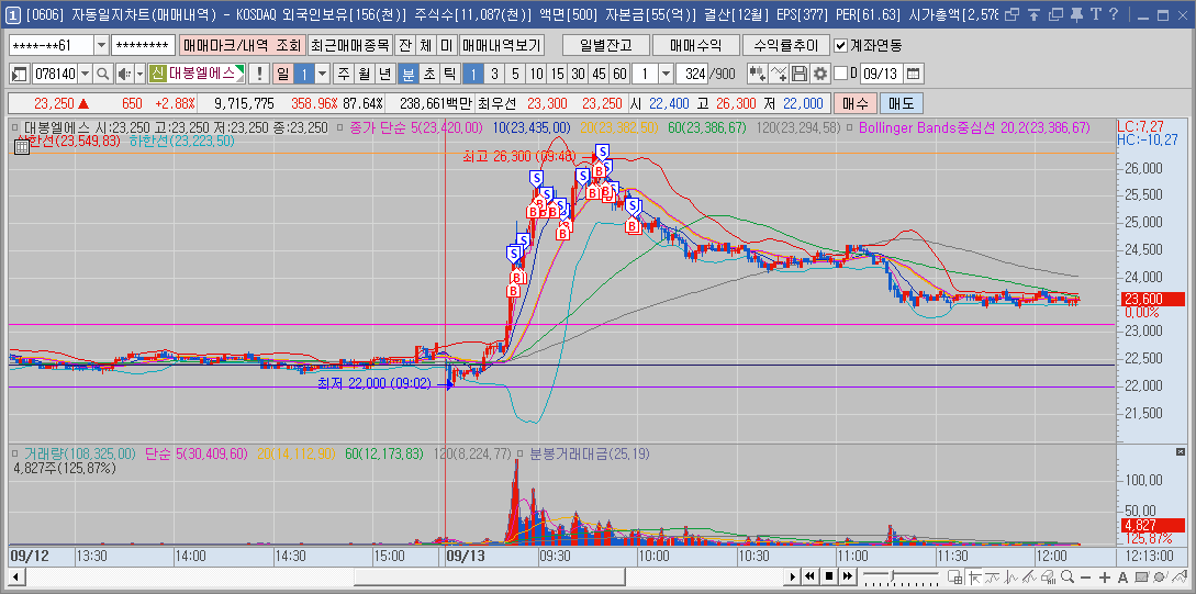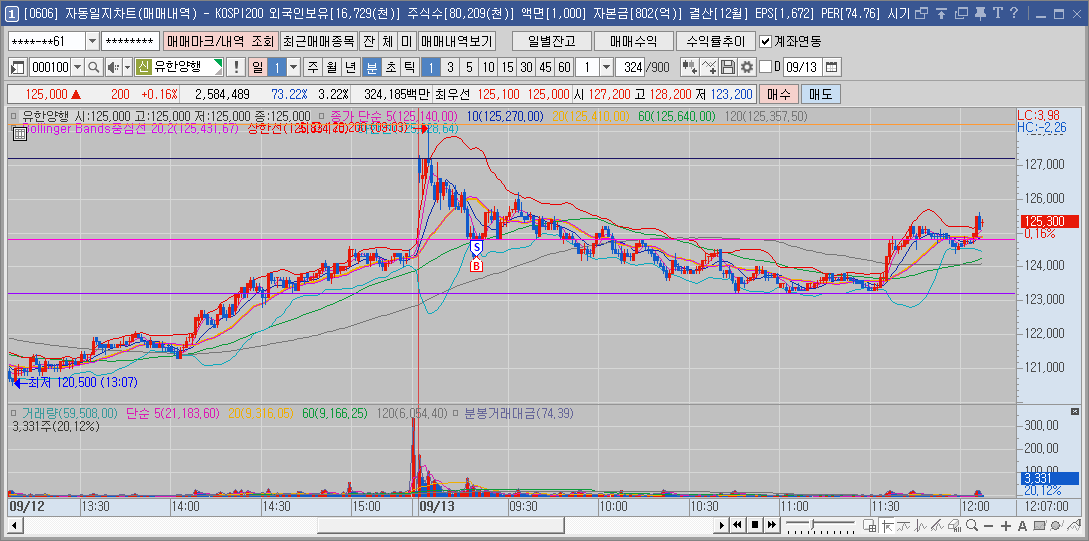 고점부분에서 횡보하는 구간에서 짤짤이로 많이 털렷다