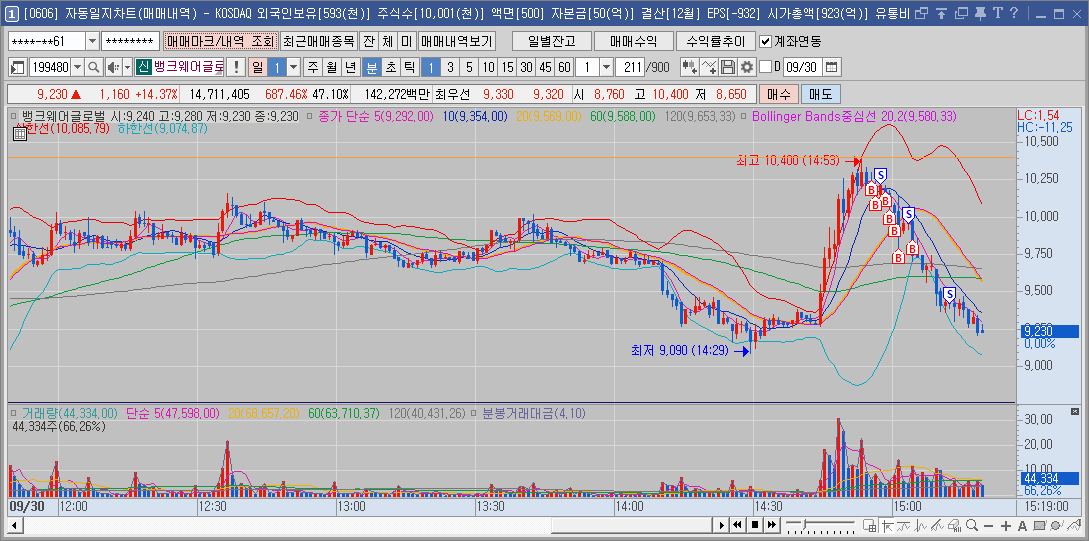 시가부근까지와서 음봉하나 띄우고 위로 갈줄알았는데 밑으로 가서 기다리다가 한번 더 빠질때 손절