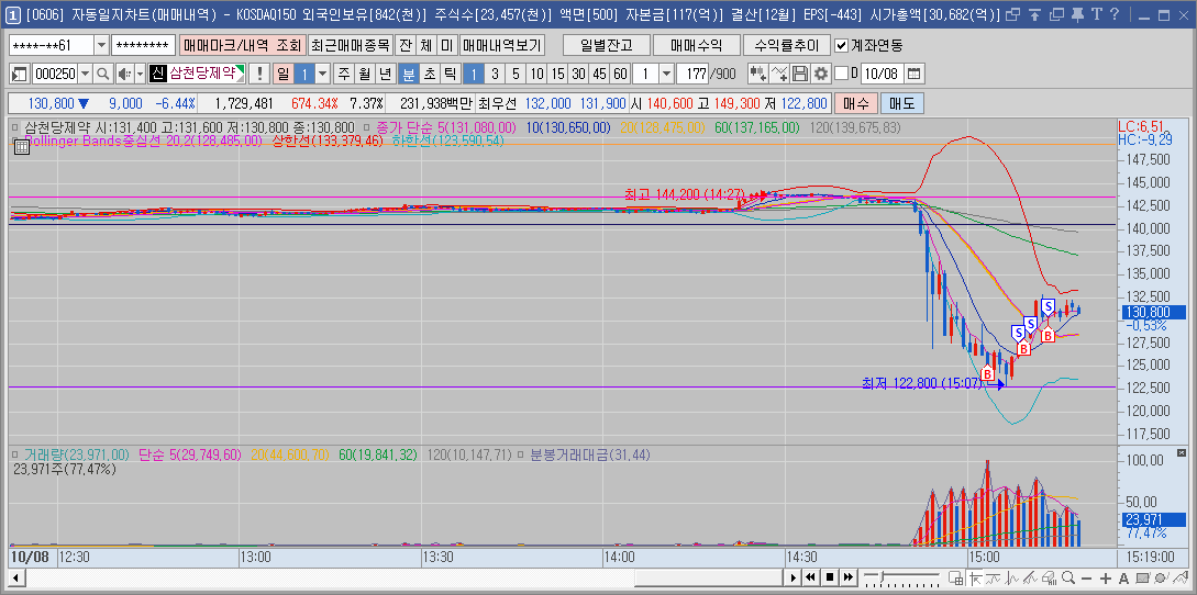 오후에 대금이 쫙쫙 뽑아주길래 더 갈줄알고 매매했고 또다른 자리를 돌파로 봐서 진입했는데